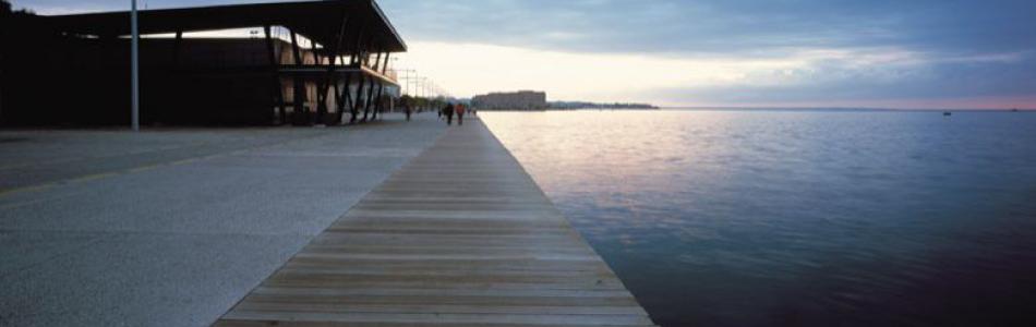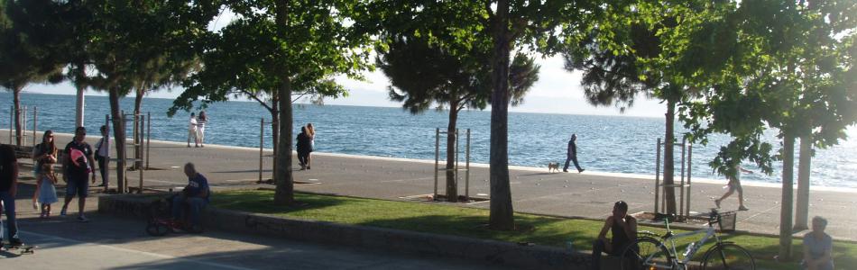 On the New Beach, there are 15 green spaces that look like rooms or gardens with a particular theme for each. These “rooms” will remind you of the gardens of houses that once existed in the area and which went all the way down to the beach. The paved part is nice too and you can enjoy a walk by the sea. If you want to enjoy a walk through the trees, you can follow the path from "Macedonia Palace" to the Music Hall. This footpath is particularly nice in the summer months and it mainly functions as a limit-filter between the two parts of the coastal front: the paved area and green area. You can find pavilions and refreshment stands on the way, too.
