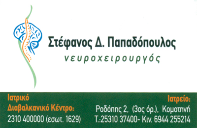 2nd Address: Rodopis 2, Komotini tel.: 25310374003rd Address.: Xalkidonos 18, Kalamaria, Thessaloniki customer tabsContactNEUROSURGEONSHEALTHIatriko Diavalkaniko Thessalonikis, Asklipiou 10, Pylaia, ThessalonikiPYLAIA THESSALONIKISKALAMARIA THESSALONIKISTHESSALONIKI2310445037231040000025310374006944255214docneuro1 [at] hotmail.comwww.neuroxeirourgospapadopoulos.grwww.neuroxeirourgos-thess.gr Photos Facebook LikeGoogle Plus OneShare on FacebookTweet Widget